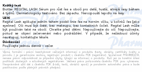 Biotter Regital Lash sérum pro růst řas/obočí 3ml