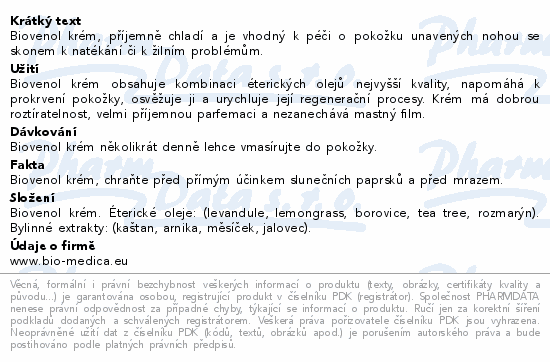 Biovenol krém, příjemně chladí a je vhodný k péči o pokožku unavených nohou se skonem k natékání či k žilním problémům.