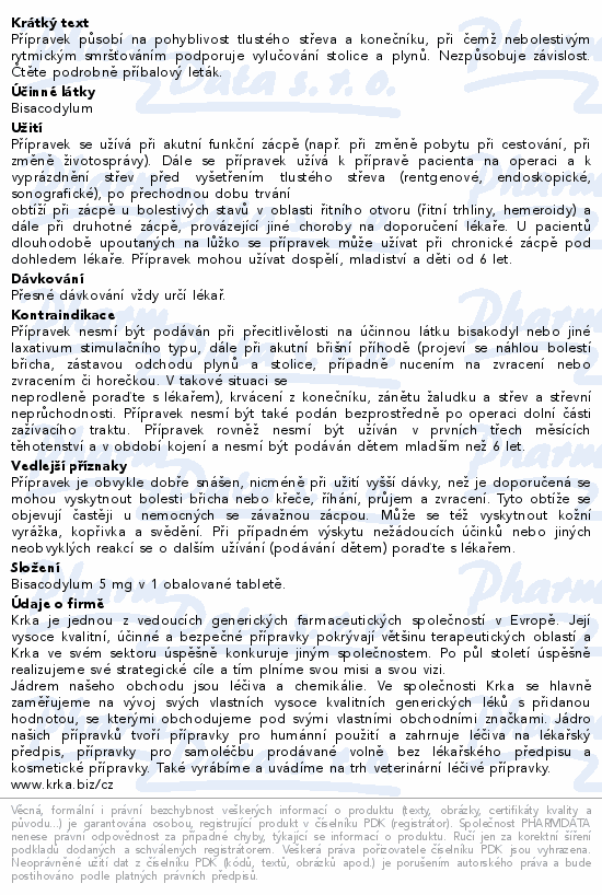 TRÁVICÍ TRAKT A METABOLISMUS -> LÉČIVA PROTI ZÁCPĚ -> LÉČIVA PROTI ZÁCPĚ -> KONTAKTNÍ LAXATIVA -> BISAKODYL |