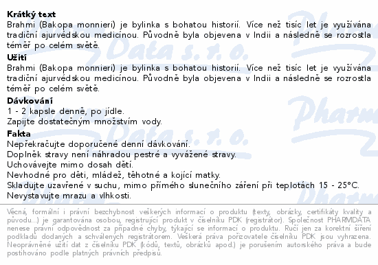 Brahmi (Bakopa monnieri) je bylinka s bohatou historií. Více než tisíc let je využívána tradiční ajurvédskou medicínou. Původně byla objevena v Indii a následně se rozrostla téměř po celém světě.