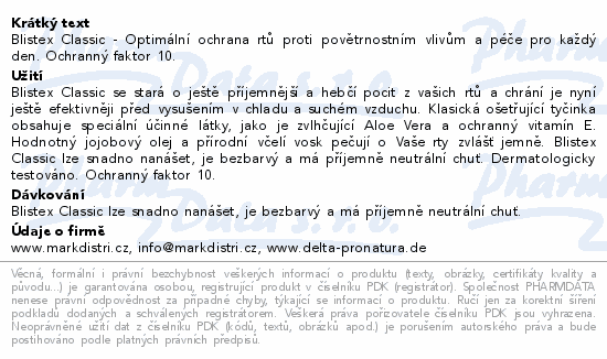Blistex Classic - Optimální ochrana rtů proti povětrnostním vlivům a péče pro každý den. Ochranný faktor 10.