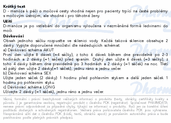 D - manóza k péči o močové cesty vhodná nejen pro pacienty trpící na časté problémy s močovým ústrojím, ale vhodné i pro těhotné ženy.