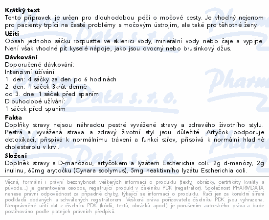 Tento přípravek je určen pro dlouhodobou péči o močové cesty. Je vhodný nejenom pro pacienty trpící na časté problémy s močovým ústrojím, ale také pro těhotné ženy.