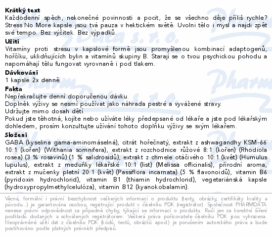 Každodenní spěch, nekonečné povinnosti a pocit, že se všechno děje příliš rychle? Stress No More kapsle jsou tvá pauza v hektickém světě. Uvolni tělo i mysl a najdi zpět své tempo. Bez výčitek. Bez výpadků.