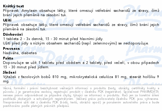Přípravek Amylasin obsahuje látky, které omezují vstřebání sacharidů ze stravy, čímž brání jejich přeměně na zásobní tuk.