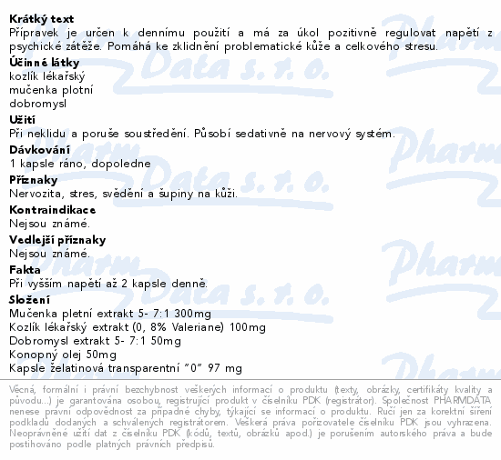Přípravek je určen k dennímu použití a má za úkol pozitivně regulovat napětí z psychické zátěže. Pomáhá ke zklidnění problematické kůže a celkového stresu.