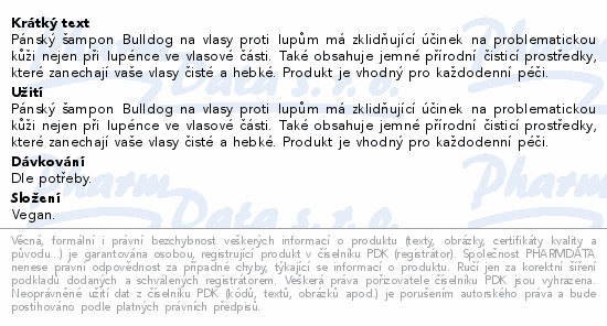 BULLDOG Anti-Dandruff Shampoo proti lupům 300ml