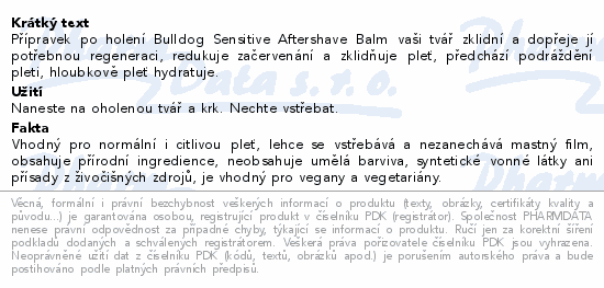 Přípravek po holení Bulldog Sensitive Aftershave Balm vaši tvář zklidní a dopřeje jí potřebnou regeneraci, redukuje začervenání a zklidňuje pleť, předchází podráždění pleti, hloubkově pleť hydratuje.