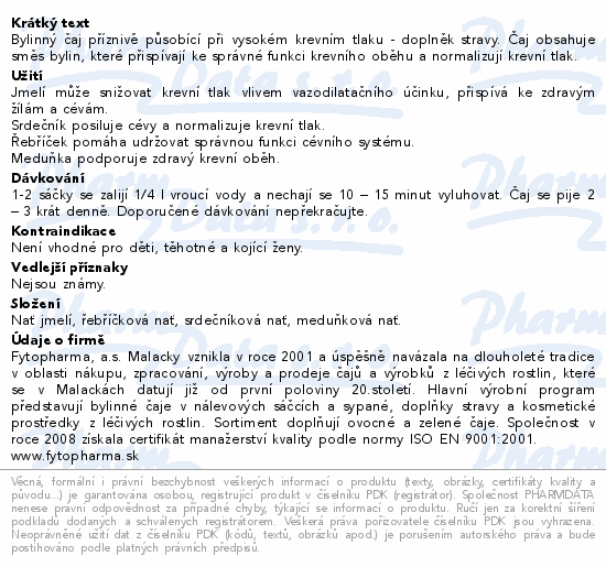 Bylinný čaj na vysoký tlak 20x1.25g Fytopharma