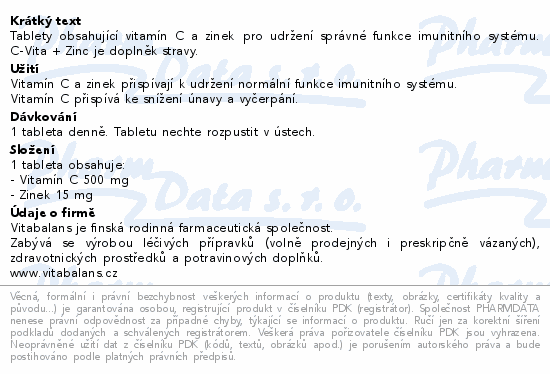 Tablety obsahující vitamín C a zinek pro udržení správné funkce imunitního systému. C-Vita + Zinc je doplněk stravy.