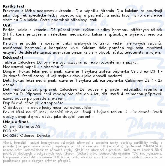 Prevence a léčba nedostatku vitamínu D a vápníku. Vitamin D a kalcium se používají jako doplněk specifické léčby osteoporózy u pacientů, u nichž hrozí riziko deficience vitaminu D a kalcia. Čtěte pozorně příbalový leták.