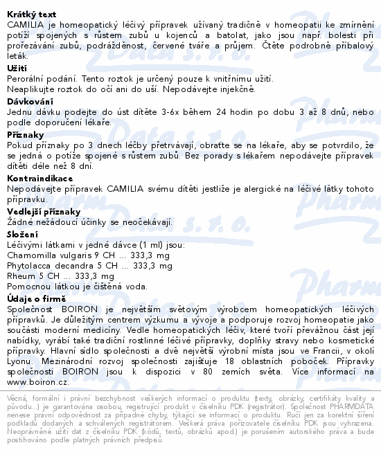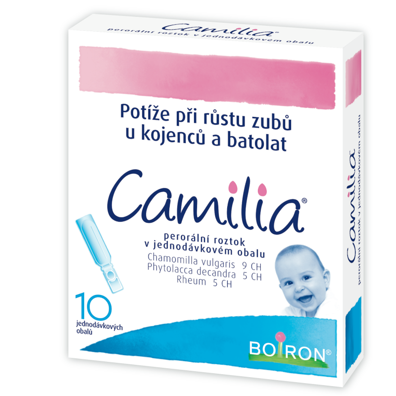 CAMILIA je homeopatický léčivý přípravek užívaný tradičně v homeopatii ke zmírnění potíží spojených s růstem zubů u kojenců a batolat, jako jsou např. bolesti při prořezávání zubů, podrážděnost, červené tváře a průjem. Čtěte pozorně příbalový leták.