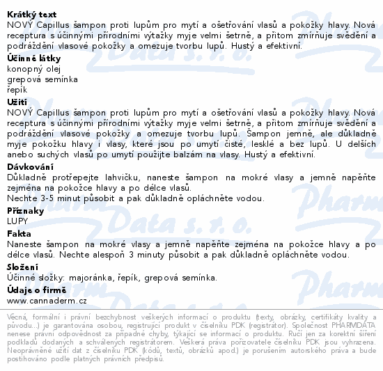 Cannaderm Capillus šampon proti lupům NEW 150ml