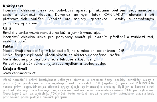 Intenzivní chladivá úleva pro pohybový aparát při akutním přetížení zad, namožení svalů a ztuhlosti kloubů. Komplex účinných látek CANNAKUT ulevuje i při přetrvávajících obtížích. Vhodné pro seniory, sportovce i osoby s namoženým pohybový aparátem.