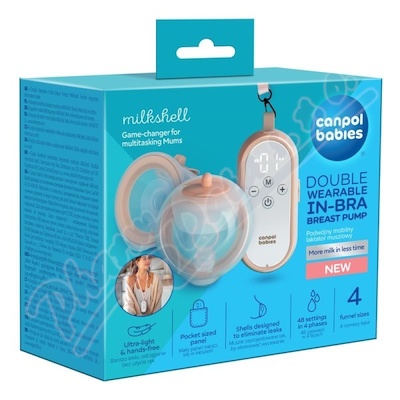 Dvojitá odsávačka mateřského mléka MilkShell. Velmi lehké trychtýře se zásobníkem na mléko dokonale přilnou k prsům díky technologii PerfectFIT. Více pohodlí, více mléka – ideální odsávačka pro každou maminku.