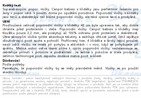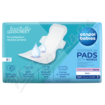 Superabsorpční popor. vložky Canpol babies s křidélky jsou perfektním řešením pro ženy v popor. obd. k použití doma po opuštění porodnice. Poporodní vložky s křidélky jsou tenčí a diskrétnější než běžné poporodní vložky, ale také vysoce savé a prodyšné.