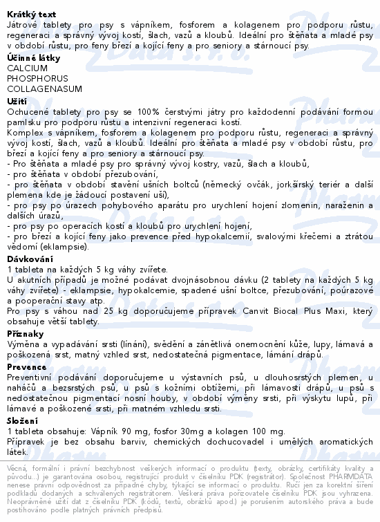 Játrové tablety pro psy s vápníkem, fosforem a kolagenem pro podporu růstu, regeneraci a správný vývoj kostí, šlach, vazů a kloubů. Ideální pro štěňata a mladé psy v období růstu, pro feny březí a kojící feny a pro seniory a stárnoucí psy.