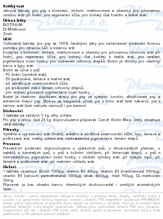 Játrové tablety pro psy s biotinem, zinkem, methioninem a vitamíny pro přirozenou obnovu srsti při línání, pro regeneraci kůže, pro bohatý růst kvalitní a lesklé srsti.