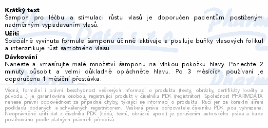 Šampon který napomáhá stimulaci růstu vlasů, je doporučen pacientům postiženým nadměrným vypadáváním vlasů.