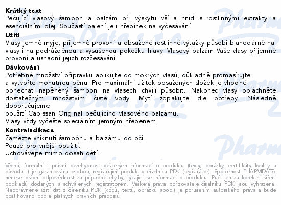 Capissan Original šampon+balzám vši 2x200ml Fagron