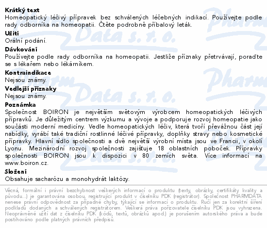 Homeopatický léčivý přípravek bez schválených léčebných indikací. Používejte podle rady odborníka na homeopatii. Čtěte pozorně příbalový leták.