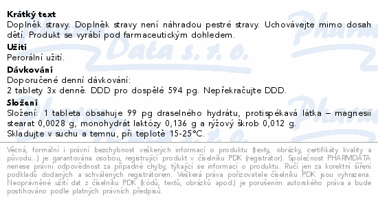 Doplněk stravy. Doplněk stravy není náhradou pestré stravy. Uchovávejte mimo dosah dětí. Produkt se vyrábí pod farmaceutickým dohledem.