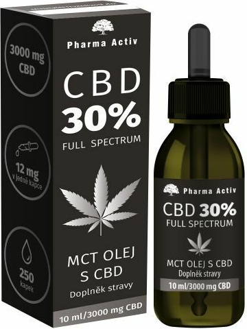 CBD 30% MCT olej 3000mg 10ml, v balení 3000mg CBD, 12mg CBD v jedné kapce, 250 kapek v balení 10ml. Plně spektrální CBD konopný olej. Full Spectrum.