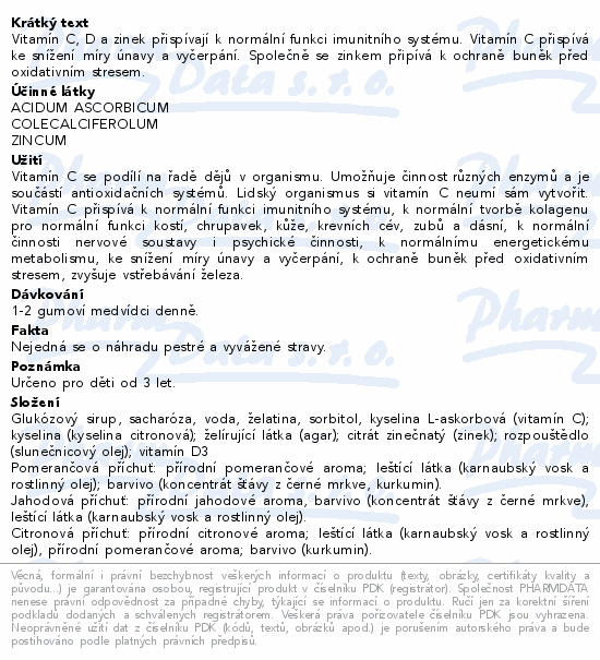 Vitamín C, D a zinek přispívají k normální funkci imunitního systému. Vitamín C přispívá ke snížení míry únavy a vyčerpání. Společně se zinkem připívá k ochraně buněk před oxidativním stresem.
