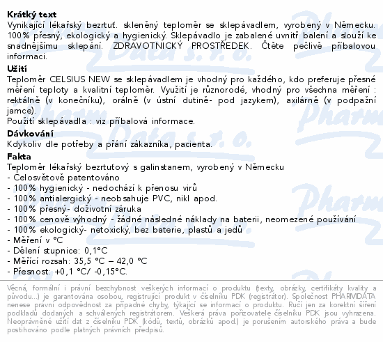 Celsius Classic teploměr lék.bezrtuť.+sklepávadlo