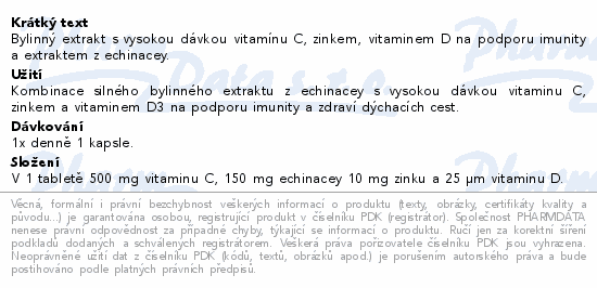 Bylinný extrakt s vysokou dávkou vitamínu C, zinkem, vitaminem D na podporu imunity a extraktem z echinacey.