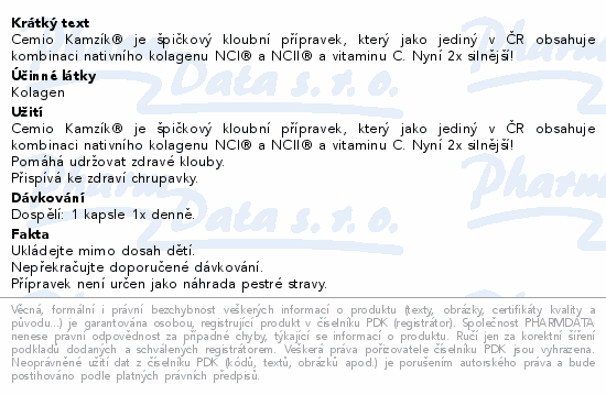 Cemio Kamzík® je špičkový kloubní přípravek, který jako jediný v ČR obsahuje kombinaci nativního kolagenu NCI® a NCII® a vitaminu C. Nyní 2x silnější!