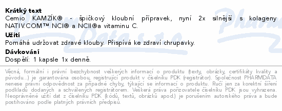 Cemio KAMZÍK® - špičkový kloubní přípravek, nyní 2x silnější s kolageny NATIV.COM™ NCI® a NCII®a vitaminu C.