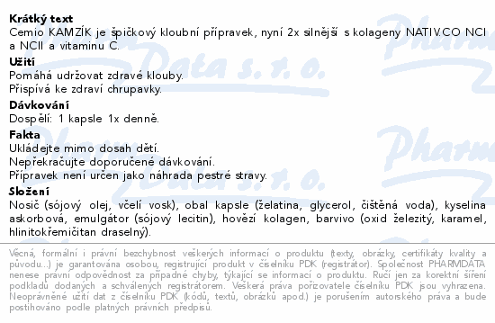 Cemio KAMZÍK je špičkový kloubní přípravek, nyní 2x silnější s kolageny NATIV.CO NCI a NCII a vitaminu C.