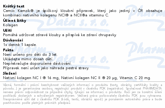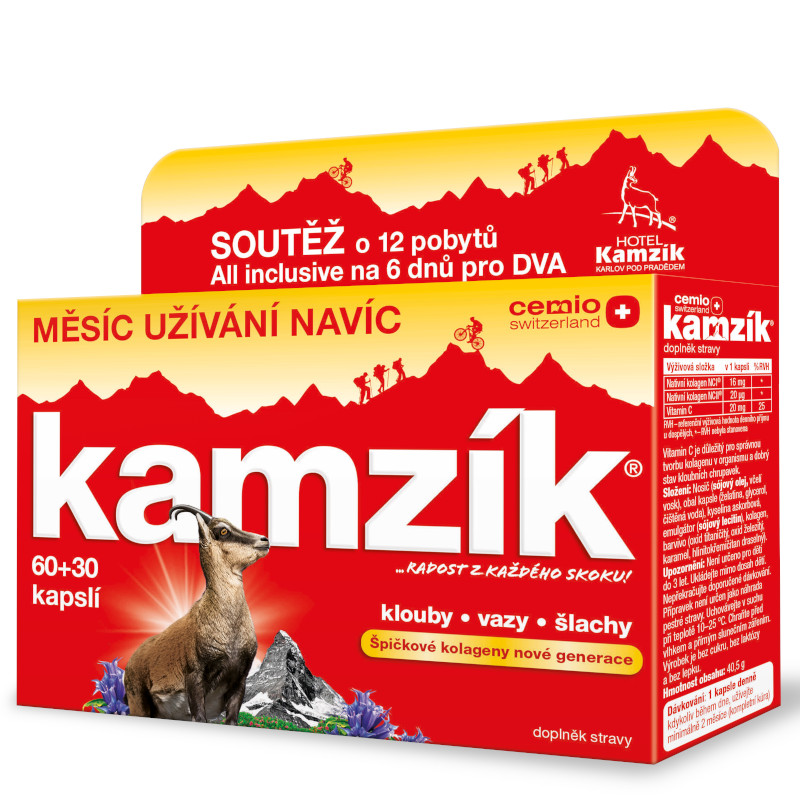 Cemio Kamzík® je špičkový kloubní přípravek, který jako jediný v ČR obsahuje kombinaci nativního kolagenu NCI® a NCII®a vitaminu C.
