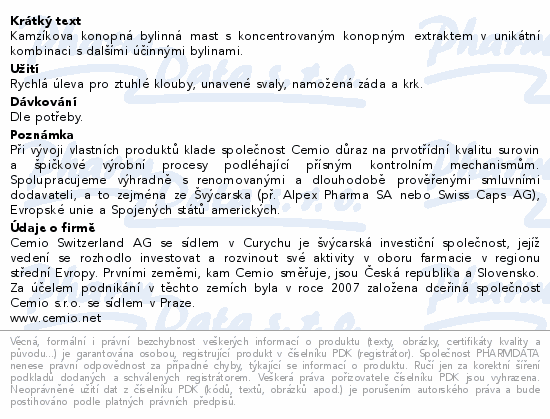 Kamzíkova konopná bylinná mast s koncentrovaným konopným extraktem v unikátní kombinaci s dalšími účinnými bylinami.