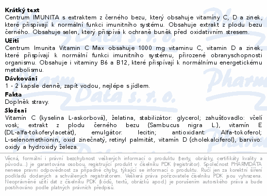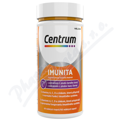 Centrum IMUNITA s extraktem z černého bezu, který obsahuje vitamíny C, D a zinek, které přispívají k normální funkci imunitního systému. Obsahuje extrakt z plodu bezu černého. Obsahuje selen, který přispívá k ochraně buněk před oxidativním stresem.
