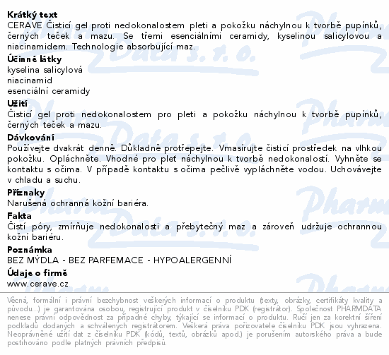CERAVE Čisticí gel proti nedokonalostem pleti a pokožku náchylnou k tvorbě pupínků, černých teček a mazu. Se třemi esenciálními ceramidy, kyselinou salicylovou a niacinamidem. Technologie absorbující maz.