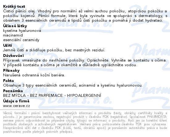 Čisticí pěnící olej. Vhodný pro normální až velmi suchou pokožku, atopickou pokožku a pokožku kojenců. Pěnící formule, která byla vyvinuta ve spolupráci s dermatology, s obsahem 3 esenciálních ceramidů a lipidů čistí pokožku a pomáhá jí dodat hydrataci.