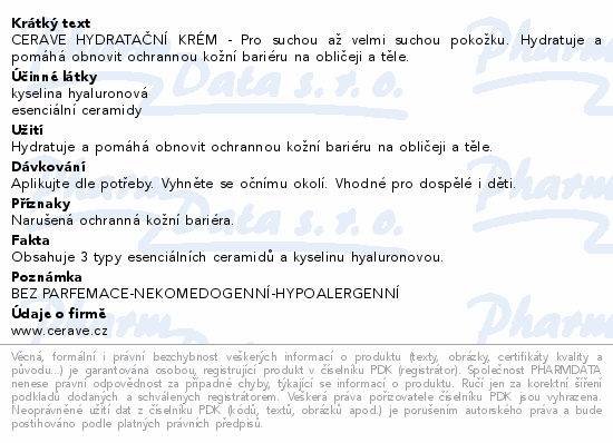 CERAVE HYDRATAČNÍ KRÉM - Pro suchou až velmi suchou pokožku. Hydratuje a pomáhá obnovit ochrannou kožní bariéru na obličeji a těle.