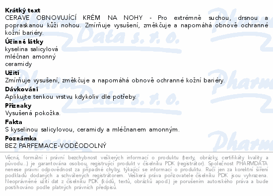 CERAVE OBNOVUJÍCÍ KRÉM NA NOHY - Pro extrémně suchou, drsnou a popraskanou kůži nohou. Zmírňuje vysušení, změkčuje a napomáhá obnově ochranné kožní bariéry.