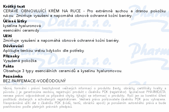 CERAVE OBNOVUJÍCÍ KRÉM NA RUCE - Pro extrémně suchou a drsnou pokožku rukou. Zmírňuje vysušení a napomáhá obnově ochranné kožní bariéry.