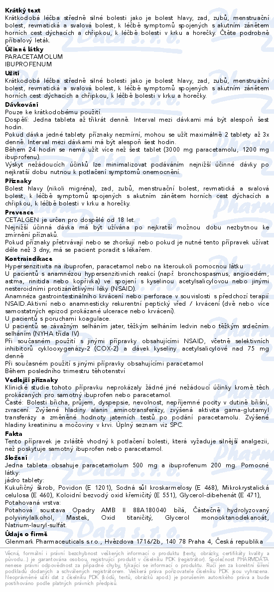CETALGEN obsahuje léčivé látky ibuprofenum a paracetamolum.