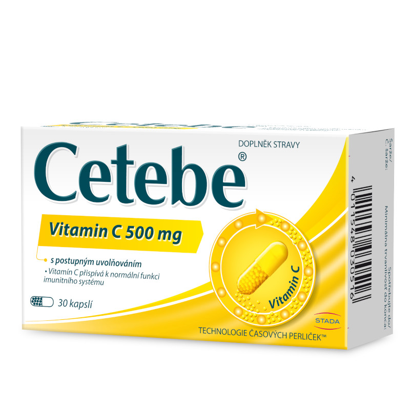 Vitamin C 500 mg s postupným uvolňováním ve formě tzv. časových perliček, které se rozpouštějí plynule a uvolňují tak vitamin C do těla plynule po celý den.