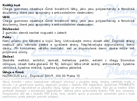 Chaga gummies obsahuje různé bioaktivní látky, jako jsou polysacharidy a fenolické sloučeniny, které jsou spojovány s antioxidačními vlastnostmi.