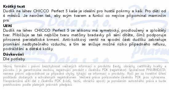 Dudlík na láhev CHICCO Perfect 5 kaše je ideální pro hustší pokrmy a kaši. Pro děti od 6 měsíců. Je navržen tak, aby svým tvarem a funkcí co nejvíce připomínal maminčin prs.