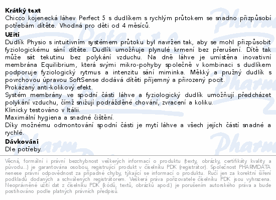 Chicco kojenecká láhev Perfect 5 s dudlíkem s rychlým průtokem se snadno přizpůsobí potřebám dítěte. Vhodná pro děti od 4 měsíců.