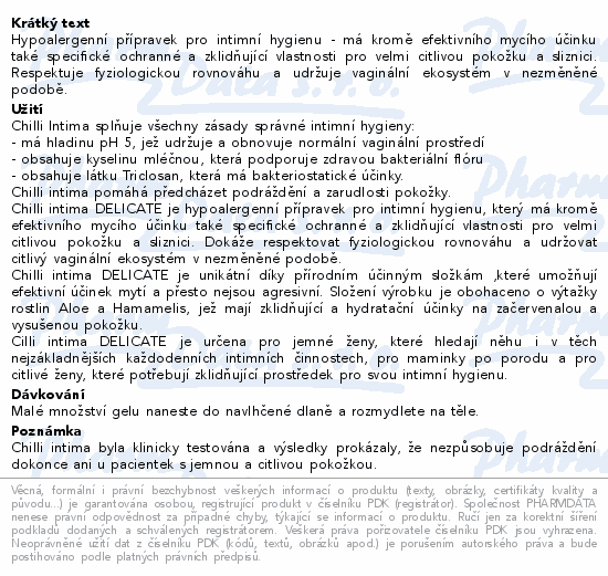 Hypoalergenní přípravek pro intimní hygienu - má kromě efektivního mycího účinku také specifické ochranné a zklidňující vlastnosti pro velmi citlivou pokožku a sliznici. Respektuje fyziologickou rovnováhu a udržuje vaginální ekosystém v nezměněné podobě.