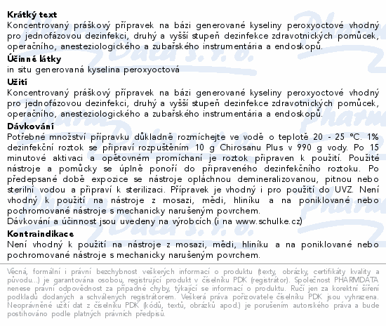 Koncentrovaný práškový přípravek na bázi generované kyseliny peroxyoctové vhodný pro jednofázovou dezinfekci, druhý a vyšší stupeň dezinfekce zdravotnických pomůcek, operačního, anesteziologického a zubařského instrumentária a endoskopů.