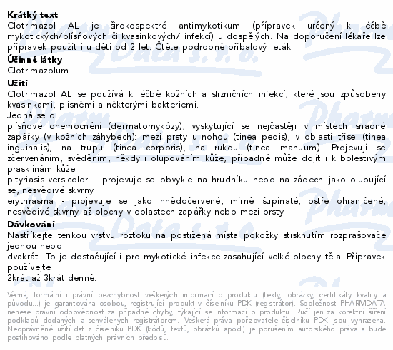 Clotrimazol AL je širokospektré antimykotikum (přípravek určený k léčbě mykotických/plísňových či kvasinkových/ infekcí) u dospělých. Na doporučení lékaře lze přípravek použít i u dětí od 2 let. Čtěte pozorně příbalový leták.