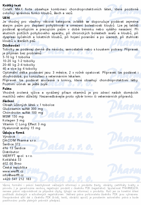 Colafit MAX forte obsahuje kombinaci chondroprotektivních látek, které pozitivně ovlivňují správnou funkci kloubů, šlach a vazů.